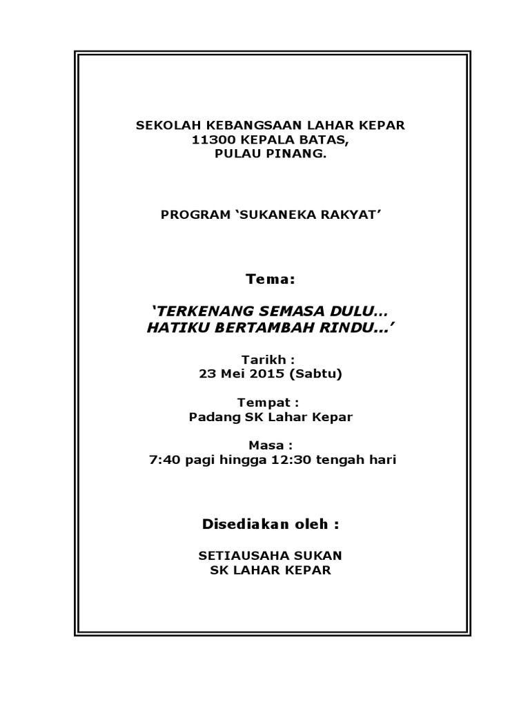 Contoh surat permohonan baik pulih a 29 kampung cegar. Kertas kerja kawad kaki krs. Laporan karnival sukan rakyat di ipg kampus temenggong ibrahim nama program.
